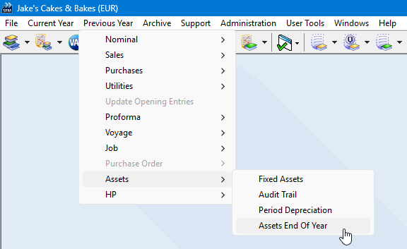 Navigate to: Previous Year > Assets > Assets End Of Year